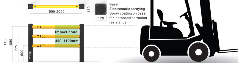 - Equivalent impact energy at a rated working angle: Equivalent to a 3-ton vehicle impacting at the speed of 8.4km/h without damage